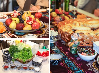 «Вы знали, что салат аччик-чучук (или шакароб) изначально — это лук с гранатом, а не с помидорами, просто потому, что последних не было на территории Узбекистана? А что хасип раньше делали только в Ташкенте? Кстати, и плов с кониной — тоже 100-процентная «столичная штучка». Узбекская кухня не может существовать вне своих климатических, культурных и этнографических особенностей. И поэтому она насчитывает более ста видов плова, около 30 видов шашлыка, 70-80 видов супов, большое количество видов хлеба, самсы и кондитерских изделий. Не побоявшись некоторой высокопарности, скажем: гастрономическое путешествие по Узбекистану — это дорога к познанию самого духа народа, его менталитета. Мы попытались объединить кулинарную палитру страны.